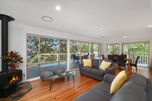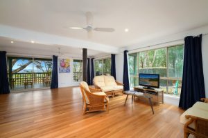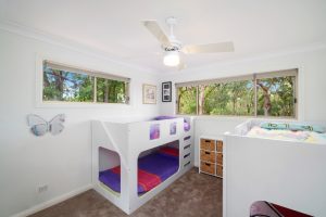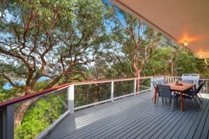 Set amongst the treetops, the house is nestled into nearly two acres of bushland which is surrounded by Bouddi National Park, so peace and privacy is assured.